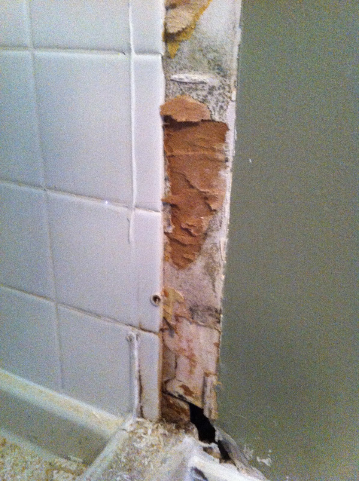 Then we saw it. MOLD. Black, spotted mold. After we saw how the shower was built, we weren't really that surprised. But still, who wants to know they've been living with mold? In the following pictures, if it's black, it's mold.